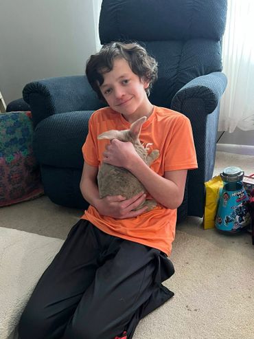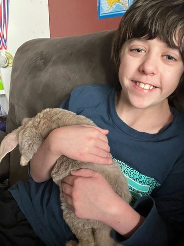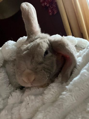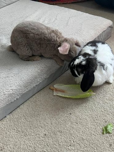 Hi! I’m Cocoa, a friendly, fun-loving Lutino Plush Lop with lavender eyes and an irresistibly soft coat. I’m always playing, always eating, and always ready to cuddle. My plush, velvety fur makes me extra cozy to snuggle, and my sweet personality makes me easy to love. I adore affection, snack time, and spending time with Oreo. If it’s fu